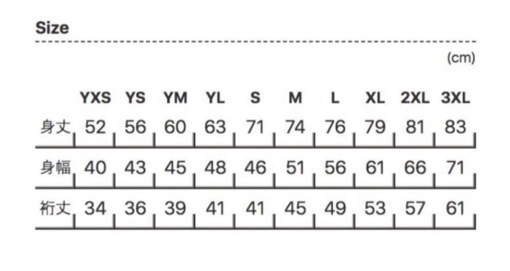 ※サイズ表は画像に記載