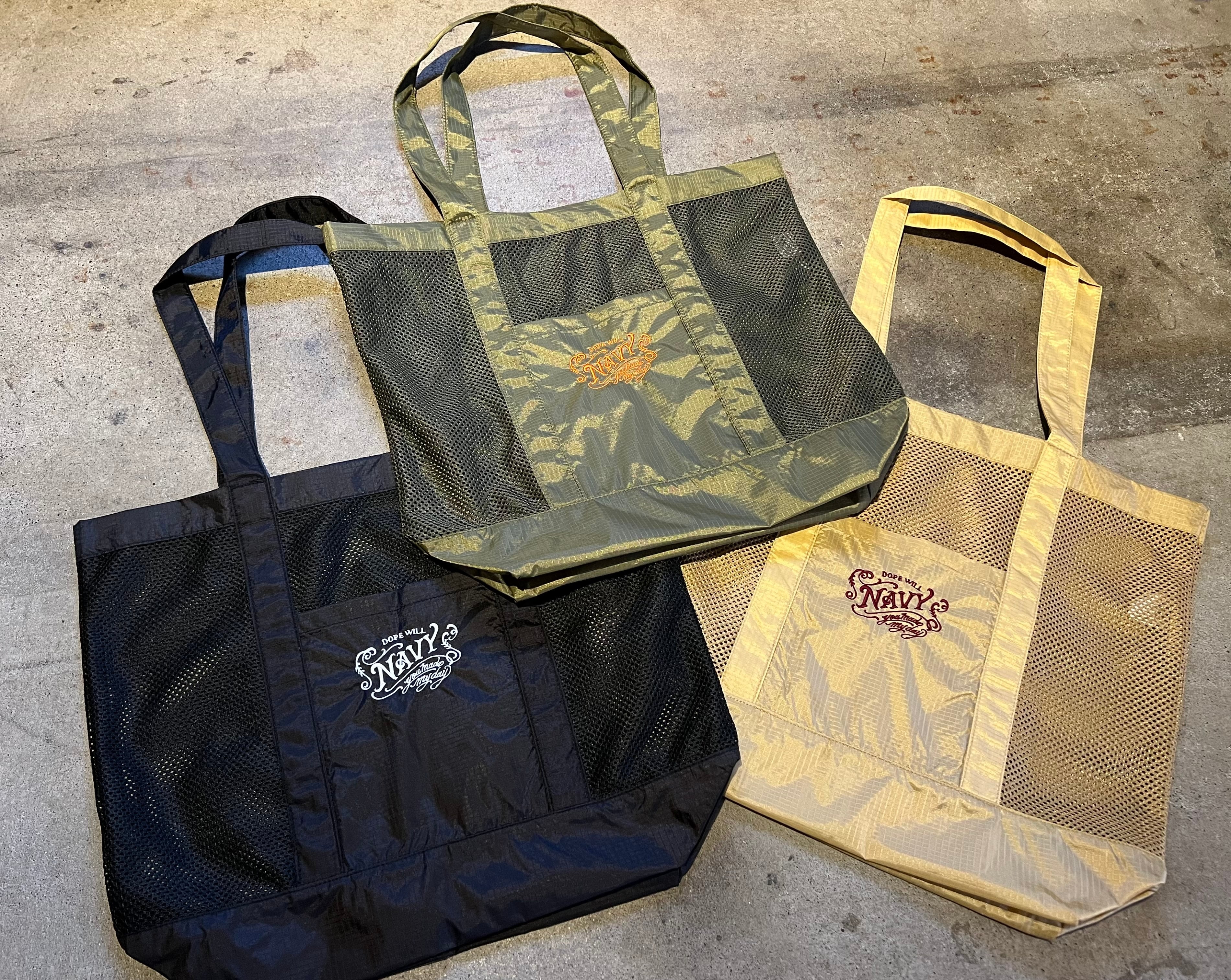 メッシュ素材のトートバック。