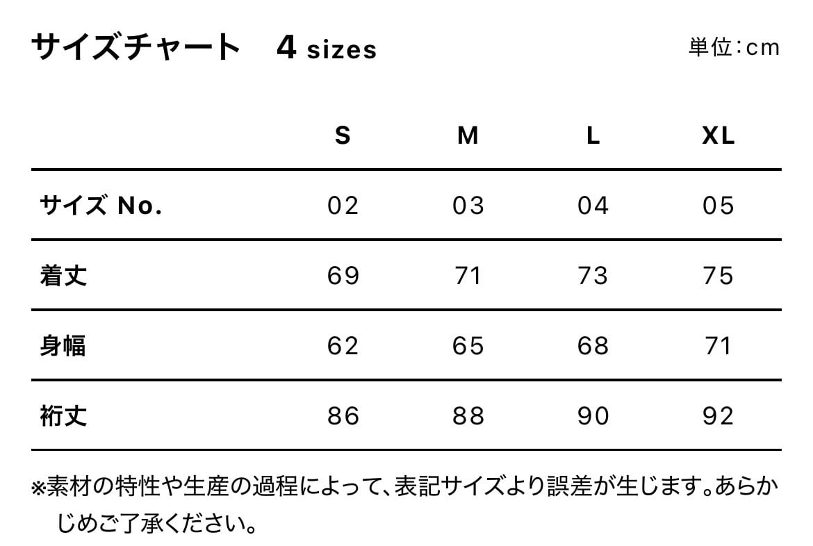 ※サイズ表は画像に記載